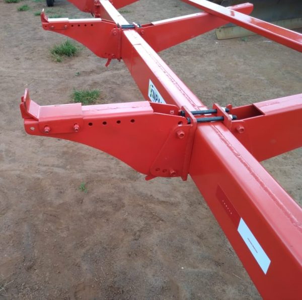 Opção de diversas posições de regulagens nos braços de apoio, servindo para plataformas de milho ou de soja.